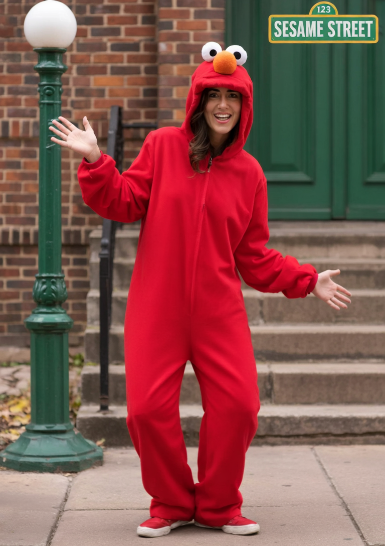 This fuzzy Elmo onesie is what you wear when you want to be adorable, funny, and done getting ready in five minutes flat. It’s playful, bright, and cozy enough to keep you warm trick-or-treating or just handing out candy on the porch.