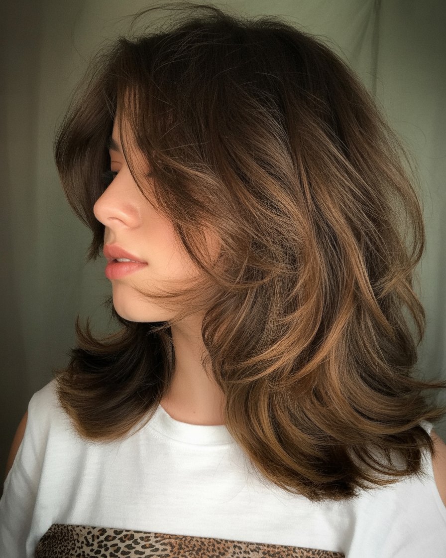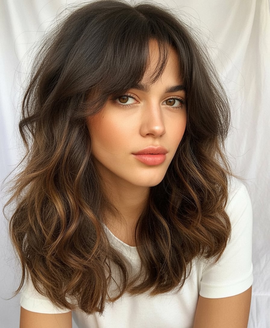 The best thing about this cut is its adaptability. Thick straight or wavy hair carries the layers well, while the bangs add a fashion-forward touch. Styling can be as simple as a quick blow-dry or a loose wave with a curling iron. It’s the haircut that feels trendy but timeless, striking a perfect balance.