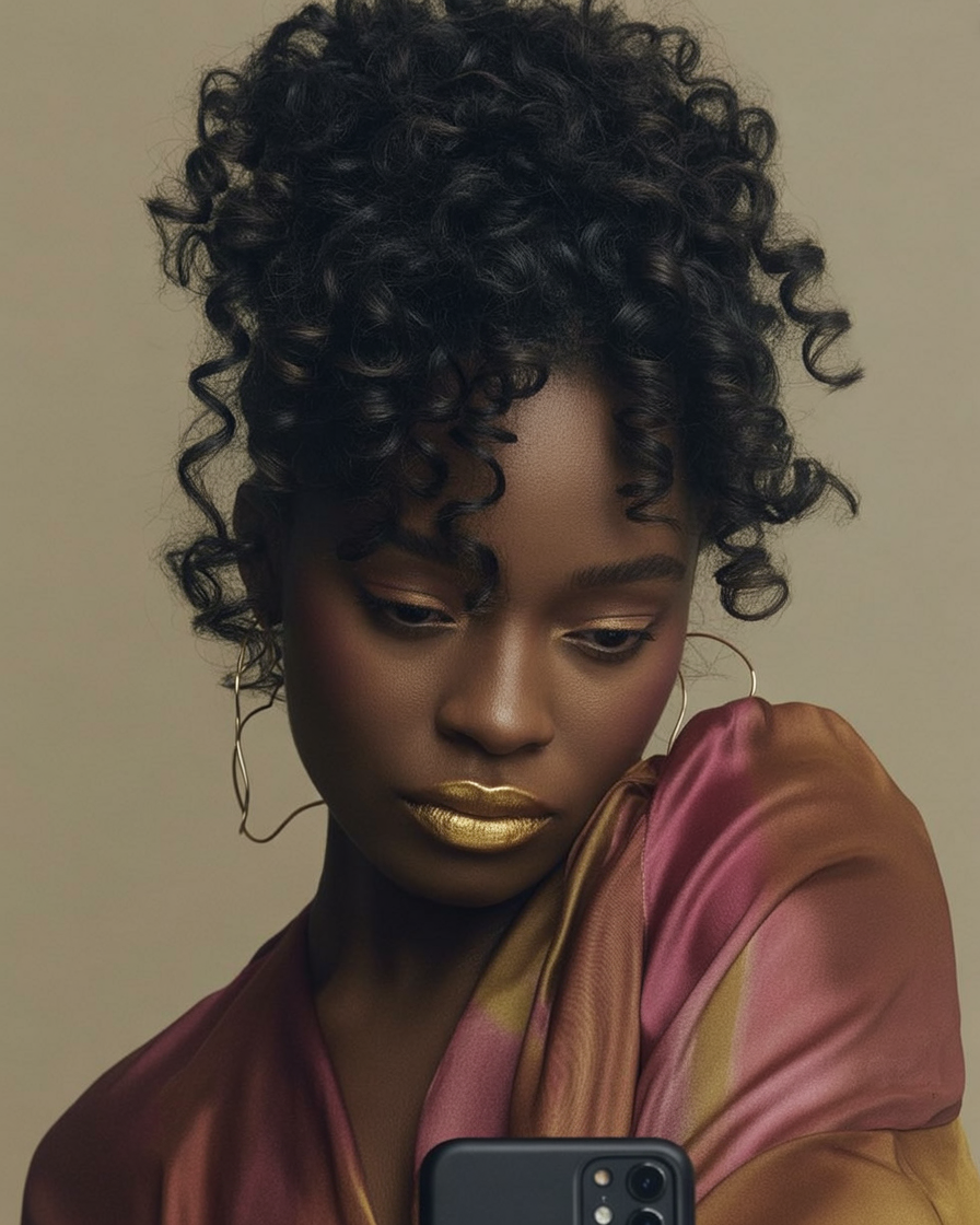 Who it’s for: medium to thick curly textures that gather easily into a puff. Coils from 3B–4C look especially lush. Brush curls upward with gel or cream, secure with a wide elastic, and smooth edges with a tiny bit of gel. A satin scrunchie protects the base at night and makes mornings easy for school. It’s natural, curly, for kids, and wonderfully easy.