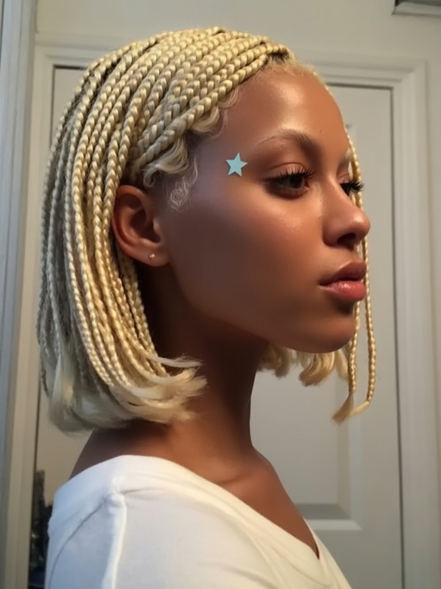 Short, swingy, and full of attitude, a braided bob is a joy to wear—especially with a cheerful blonde tone that lights up the room. The ends curve softly to frame the jaw, and the tidy braids mean every strand stays in place without losing personality. It’s playful enough for after-school activities yet chic for family photos, and it grows out gracefully so you get plenty of wear.