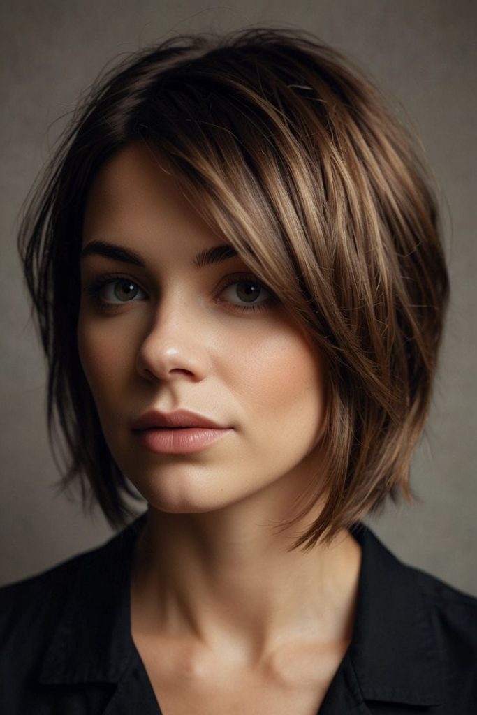 This trendy textured bob is the perfect quick and stylish hairstyle for busy moms. With its layered cuts and subtle highlights, it offers a contemporary look that’s both practical and fashionable. This style is particularly effective for those looking to minimize styling time but still maintain a polished appearance.