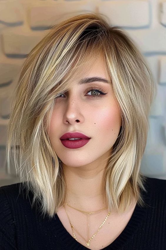 The wavy lob with highlights is a versatile and vibrant hairstyle suitable for all occasions. It strikes the perfect balance between casual and chic, making it a great option for moms with long hair or those looking to try something new without a drastic change. The waves and highlights add depth and dimension to the hair, enhancing natural beauty.