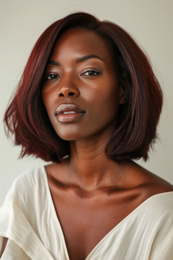 A short red bob is a vibrant option for moms over 40 black, offering a bold and refreshing change. This style is not only striking but also incredibly practical, making it a fantastic choice for women who are looking for low maintenance yet fashionable hairstyles. The rich red hue adds a warm, vibrant touch, enhancing the skin’s natural glow and offering a standout look that’s both modern and stylish.