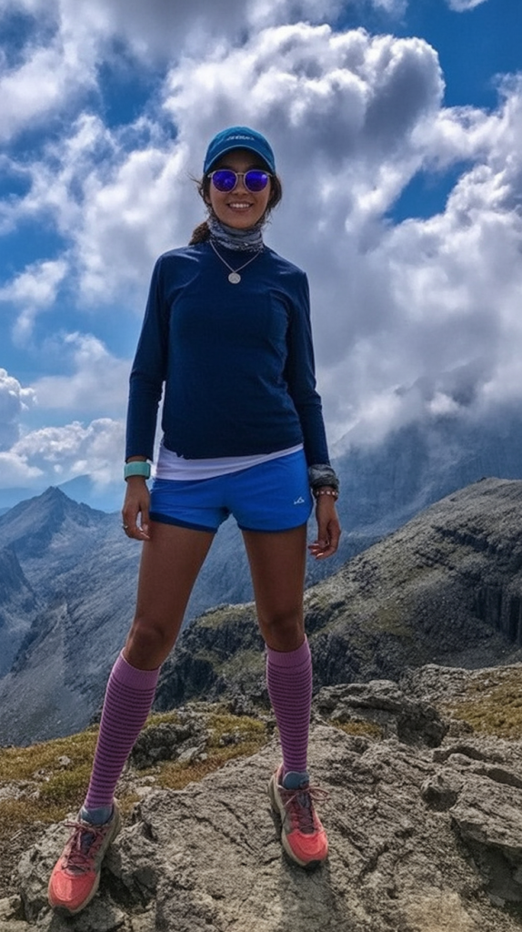 This combination shines for women who like lightweight gear that keeps them cool on long climbs. Moisture-wicking layers help manage both warm and cold weather shifts, and compression socks add comfort on steeper terrain. The mix is special because it balances practicality with a cute finish—perfect inspo for women summer hikers who love staying fast and free on the trail.