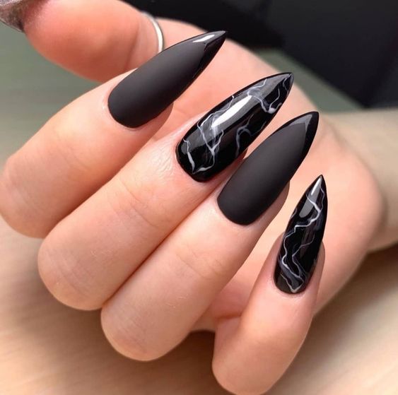 Long, pointed stiletto nails are inherently edgy and a canvas for any daring design.