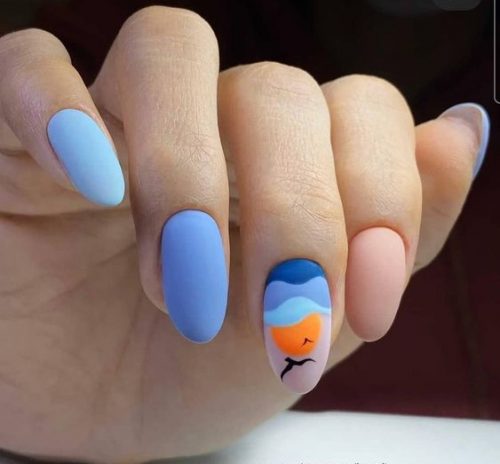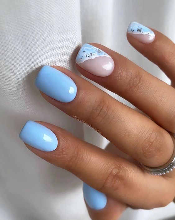Blue nails are a must-try. From the calmness of sky blue to the depth of the ocean, there’s a shade of blue that captures the summer sky and sea’s vast beauty.