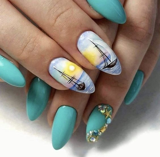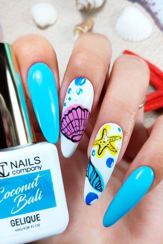 Adorning your nails with marine life motifs, such as starfish or seashells, pays homage to the ocean’s wonders.