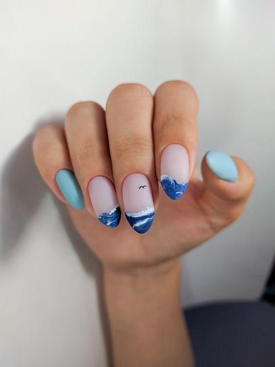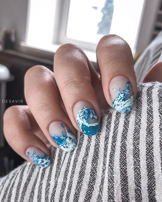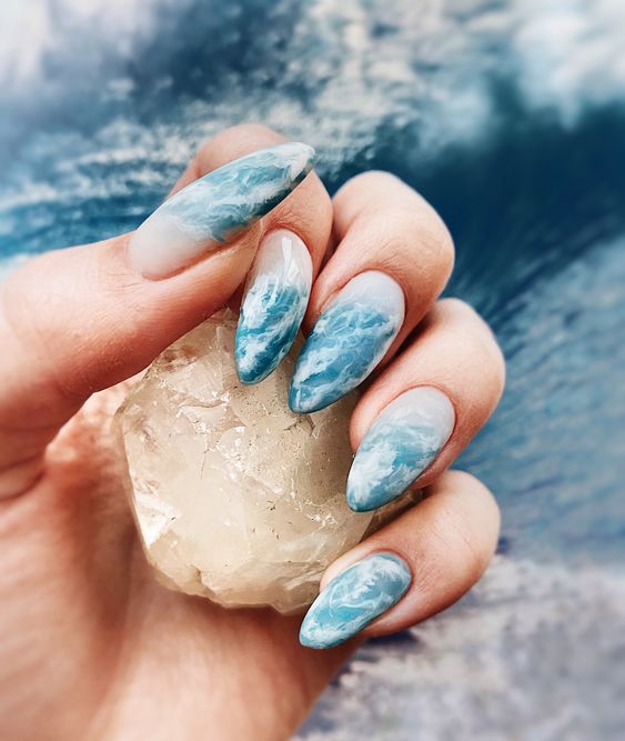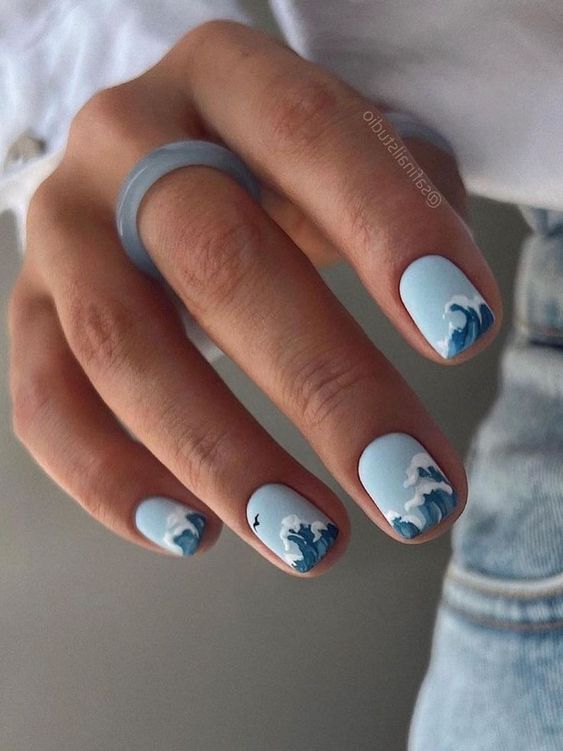 Incorporate waves into your nail art for a dynamic look. Whether it’s subtle lines or more dramatic swirls, it’s a nod to the ocean’s mesmerizing beauty.