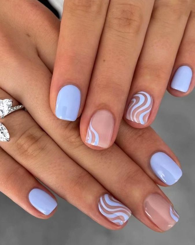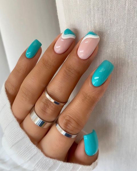 Draw inspiration from the sea with ocean-inspired designs. Think summer nail inspo short blue nails reminiscent of the ocean waves or sandy textures for that beachy feel.