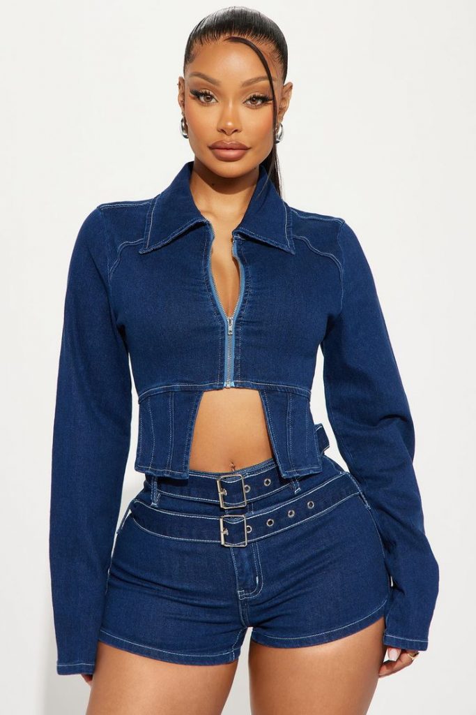 1. Classic Meets Contemporary: The Corset-Cropped Denim Duo
