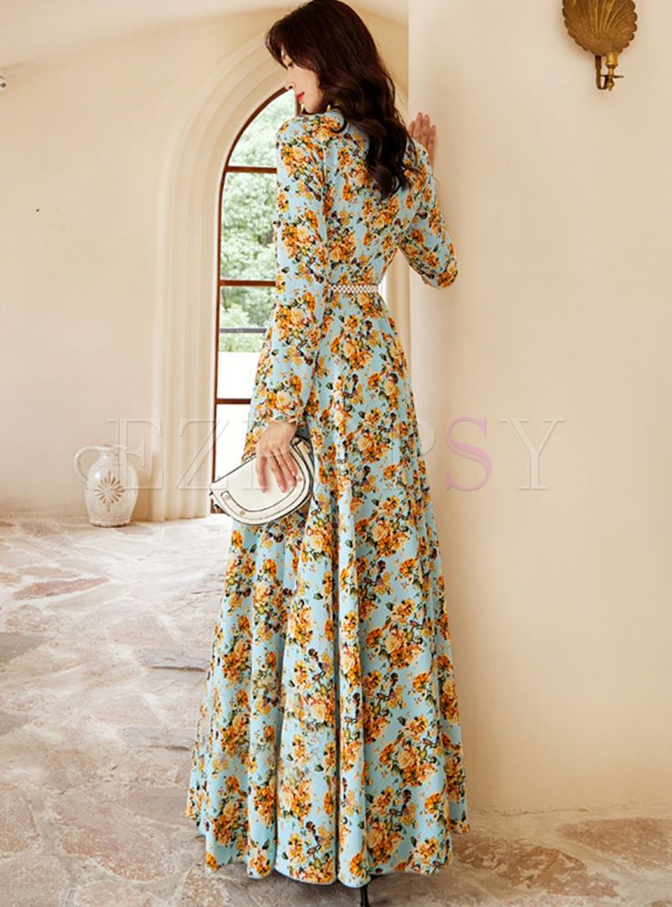 Embrace a relaxed, bohemian vibe with this floral maxi dress. The delicate print and loose fit make it a comfortable choice with boots for a casual day out. The lightweight fabric flows beautifully, making it an excellent option for warmer fall days. Style it with a wide-brim hat and a crossbody bag for a complete boho-chic look.