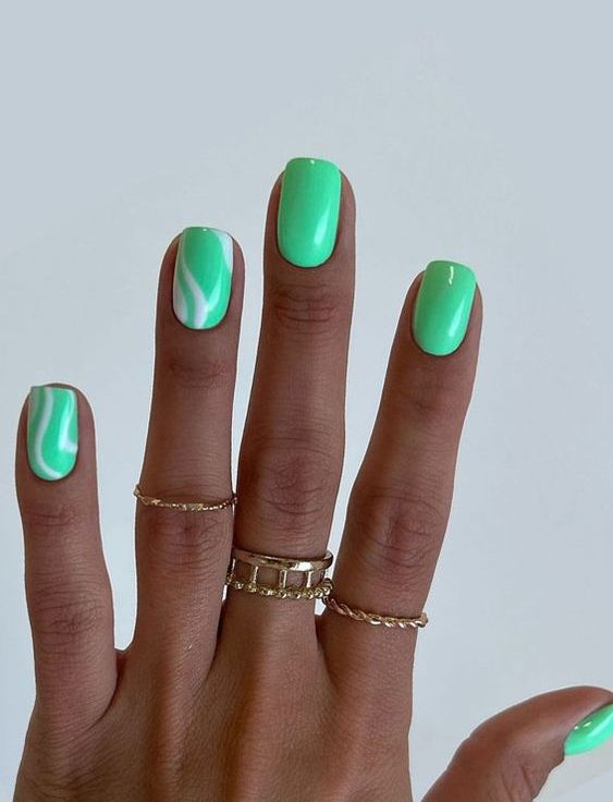 In this minimalistic yet eye-catching august nails designs short, a soothing shade of mint green covers the nails, bringing a breath of fresh air. The subtle white accents reflect the simplicity and clarity of a serene August sky, making these august nails 2024 short a refreshing choice for a summer wardrobe.