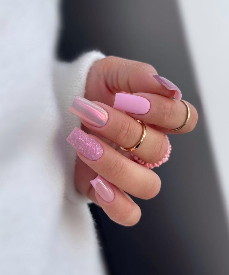 This august nails 2024 design varies from matte pink to glittery accents, offering a tactile journey as well as a visual one. These nails are a conversation between texture and color, perfect for expressing personality and style.