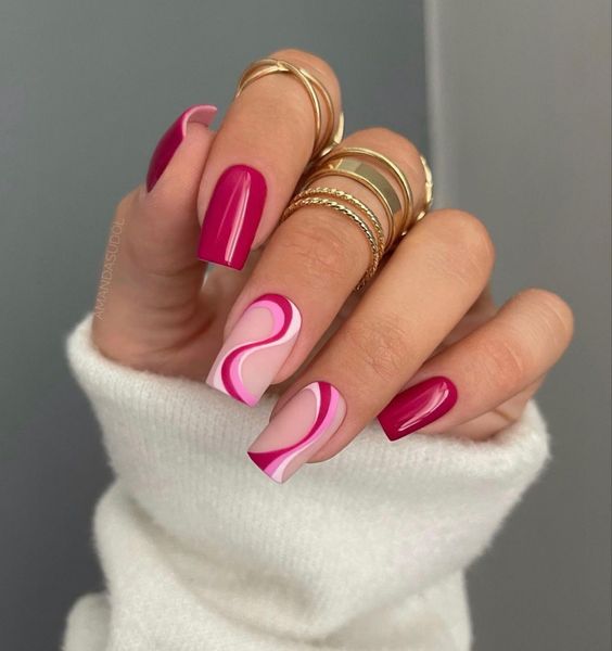 Elegance and playfulness swirl together in these august nails designs 2024. The pink and magenta hues are a nod to summer’s floral blooms, while the white swirls add a touch of sophistication. These august nails designs are for those who flirt with the line between fun and finesse.