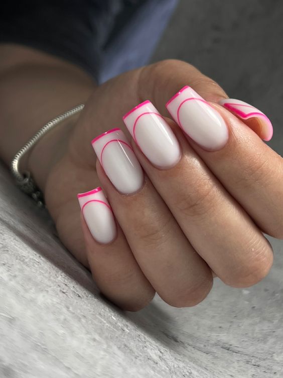 Reinventing the French manicure once more, this style introduces a bold pink stripe on a canvas of sheer white. These august nails 2024 embody the fearless streak of those who lead trends rather than follow them. The clean lines and sharp contrast make these nails a fitting choice for the fashion-forward individual.