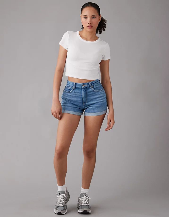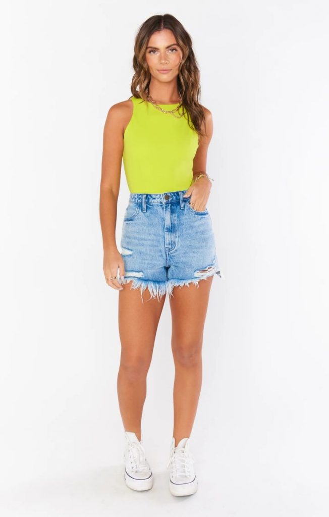 Neon has made a fearless comeback, and when paired with classic jean shorts, it creates an outfit that’s impossible to ignore. This look is perfect for those who favor sneakers with shorts women’s fashion with a twist. It’s an example of how a simple color change can transform a standard ensemble into something extraordinary.