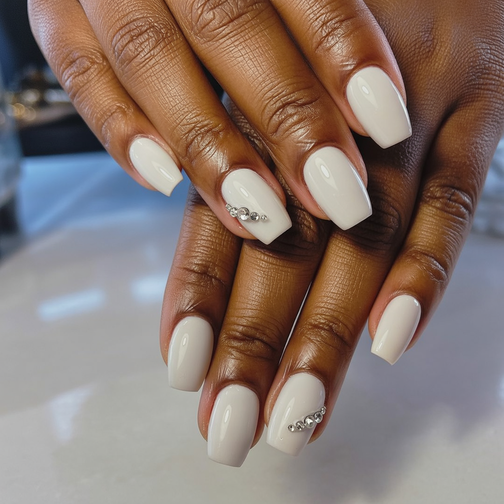 These white coffin nails are metallic and short, kind of like wearing a clean, buttoned-up dress shirt on your hands—the epitome of clean and simple and sexy and, of course, always elegant and sophisticated enough for any night of the week, whether that means wearing a blazer and heading into work or wearing a slip dress and heading to dinner or, you know, wherever date night finds you. If you’re someone who loves wearing clean and minimalistic looks and still wants your nails to be glamorous, then these are perfect for you!