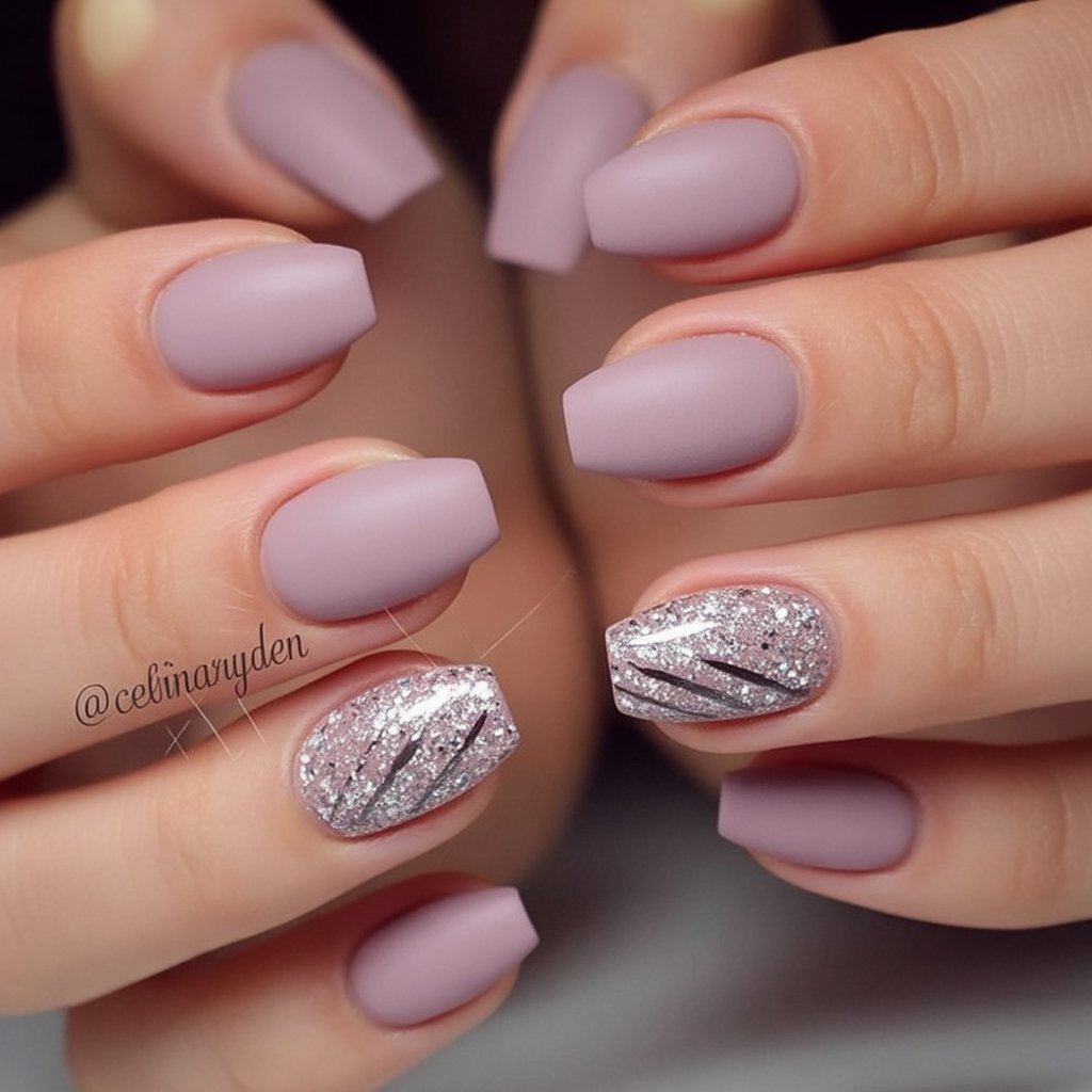 There is just an air of effortless confidence about this design as a whole. Mauve is a fantastic option if you’re over pink but still don’t want anything as awake as red or as deep as blue, and this matte finish keeps it feeling up-to-date and on point, too. Adding some sparkler details through glitter accents gives it that put-together, like-you’re-wearing-your-favorite-accessory-that-you-never-take-off, sort of vibe and can be paired just as easily with comfy knits during fall or a sundress during spring, and you never even notice just how easily it becomes a staple of your daily wardrobe—one of those ones that just quietly reminds you that you get to feel like a little extra, no matter what your schedule is that week.