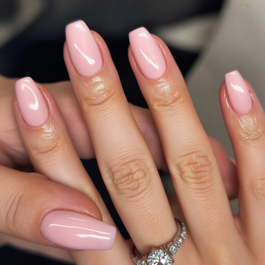 *This low-maintenance feature is a huge plus.* Since this polish color is virtually indistinguishable from natural nails, any tiny chip or grow-out is not as easily spotted, making this polish great for busy days or travel. It is gorgeous on natural nails or paired with a thin layer of acrylic if you need a little added strength, and its short coffin style gives this mani just a teensy bit of a cool and modern edge that is still easy enough to maintain and take care of on the go. You could always accessorize this mani style easily with a stacking of rings or bangles, or just go all minimal and rock this mani all on its own and still look like you have your act totally together and put together for any meetings, educational events, or other excursions you may have on your busy days ahead.*