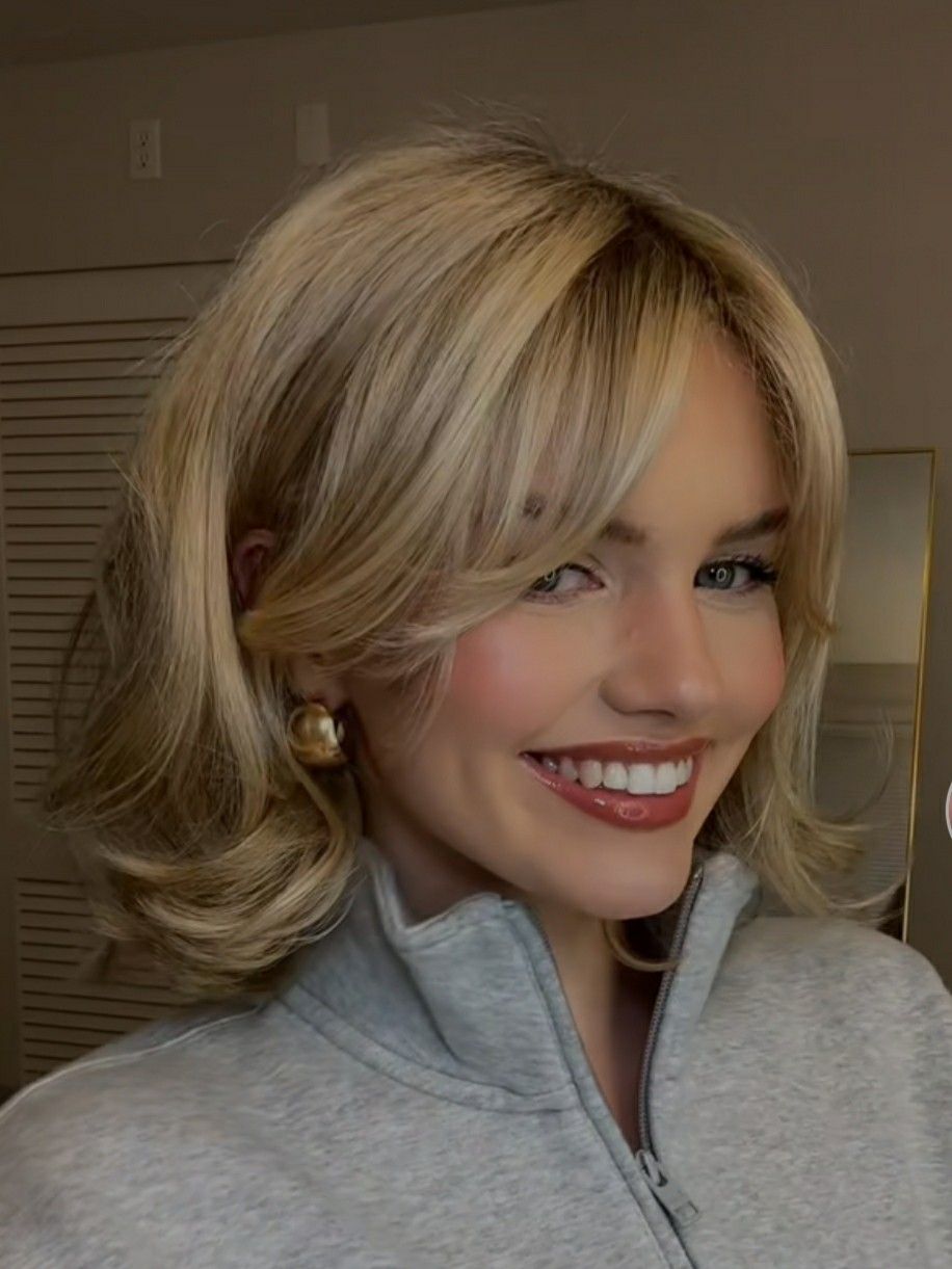 For styling, keep it simple: a heat protectant, a round brush, and a quick blow-dry will give you that soft swoop. This shape works beautifully on straight hair and wavy hair because the layers create movement without making the ends look thin. If you want extra lift at the crown, flip your part for a minute while you dry, then set the front with one large roller while you do your makeup.