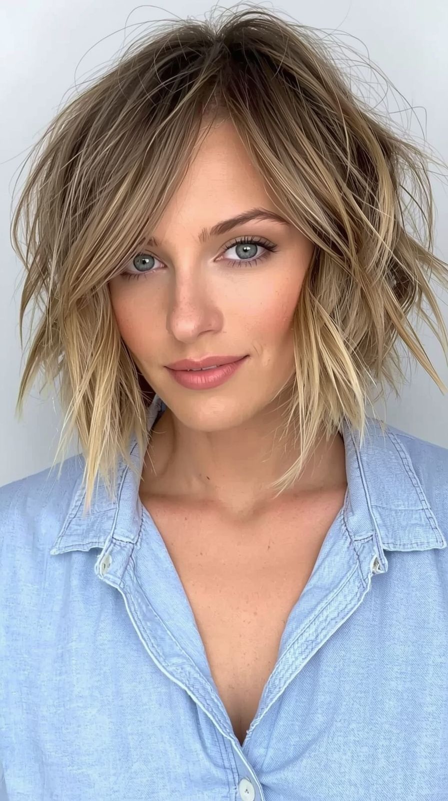 The low-maintenance magic is that you don’t have to perfect it. If you have wavy hair, scrunch in mousse and let it air-dry, then shake it out with your fingers. If you have straight hair, add a few quick bends and finish with dry shampoo for lift. Blonde tones also make the texture pop, so the layers look extra dimensional even on day-two hair.