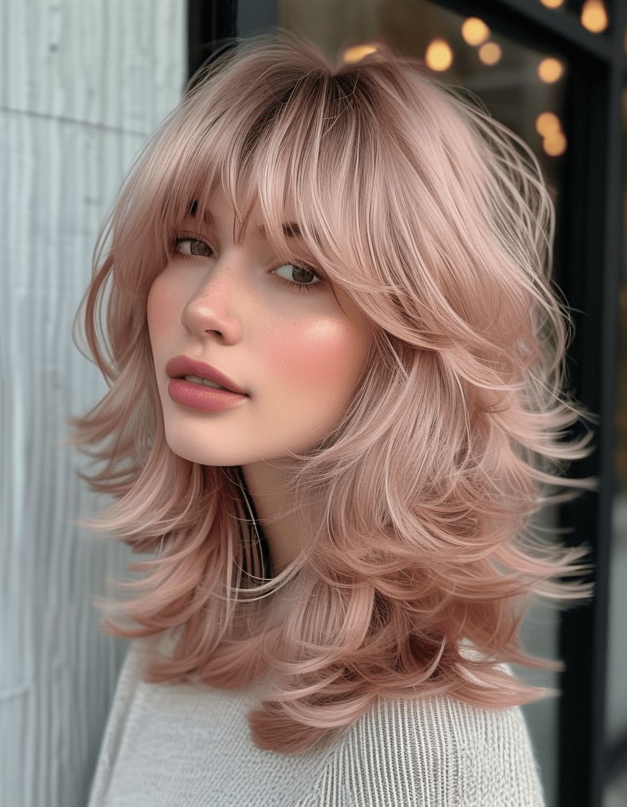This style gives “soft glam” without the fuss—like you could be heading to a party, but you could also just be running errands and still look amazing. The face-framing layers create that lifted, camera-ready shape, and the overall vibe is bright, flattering, and just a little bit flirty.