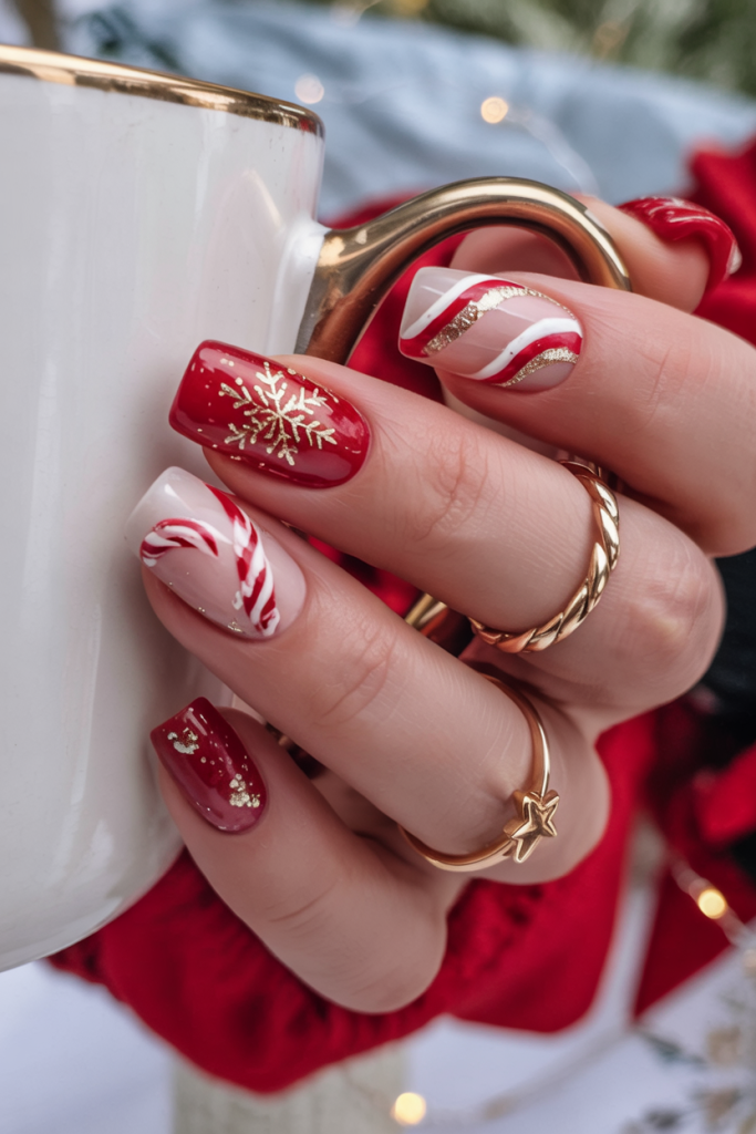 The short square pattern suits women who would like to have a different manicure pattern other than the standard winter patterns. In comparison to classic red or white, this one is more trendy and modern, and it is a great suggestion to those women who are willing to adopt bold patterns in 2026.