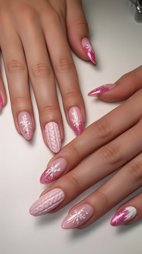 Madly, this design combines pink shimmer, sweater-knit textures, and lovely little snowflakes for ultimate winter inspiration. It really feels like putting on your…