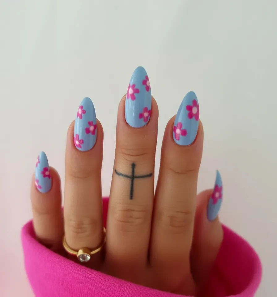 Bright florals on a cheerful pastel base instantly feel celebratory without trying too hard. This soft Blue manicure has a playful charm that feels young but not childish—like a sunny spring afternoon wrapped up in a nail design. It’s the kind of birthday look that feels relaxed and happy, making it perfect if you want your nails to match a carefree mood and a casual celebration.