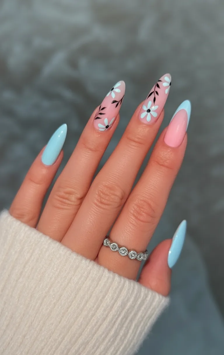 This pastel combination feels like spring in its softest form. Gentle Blue and pink shades paired with dainty flowers create a relaxed birthday look that feels light and effortlessly pretty. It’s the kind of manicure that looks beautiful in natural light and pairs perfectly with cozy knits or breezy dresses.