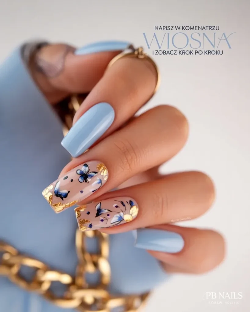 Soft sky tones mixed with delicate butterflies create a dreamy birthday manicure that feels light and elegant. The airy Blue shade has a calming effect, while the intricate artwork adds a little magic without overwhelming the design. It’s the kind of manicure that quietly stands out—perfect for a birthday that feels meaningful and relaxed.