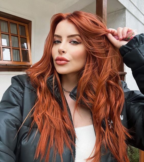 Copper hair is a beautiful choice for fall, and this look features long, wavy copper locks that add warmth and richness to your style. The deep copper tones are perfect for embracing the fall season and adding a touch of elegance to your look.