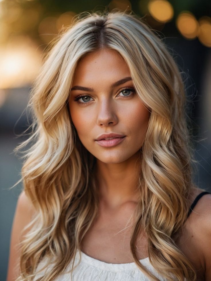 This classic blonde look is elevated with subtle highlights and lowlights, adding depth and a sun-kissed effect. The balayage technique ensures a natural blend, while the soft waves add movement. This look is ideal for those who prefer a more understated yet polished appearance. Highlights and low lights are key to achieving this balanced look.