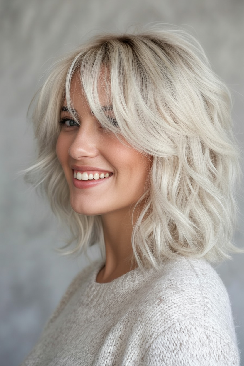 With its playful and elegant style, this platinum bobs make your face look more bouncy and bright. This hairstyle gives a fun look that’s not too much—great for lighthearted days when you haven’t gotten ready.