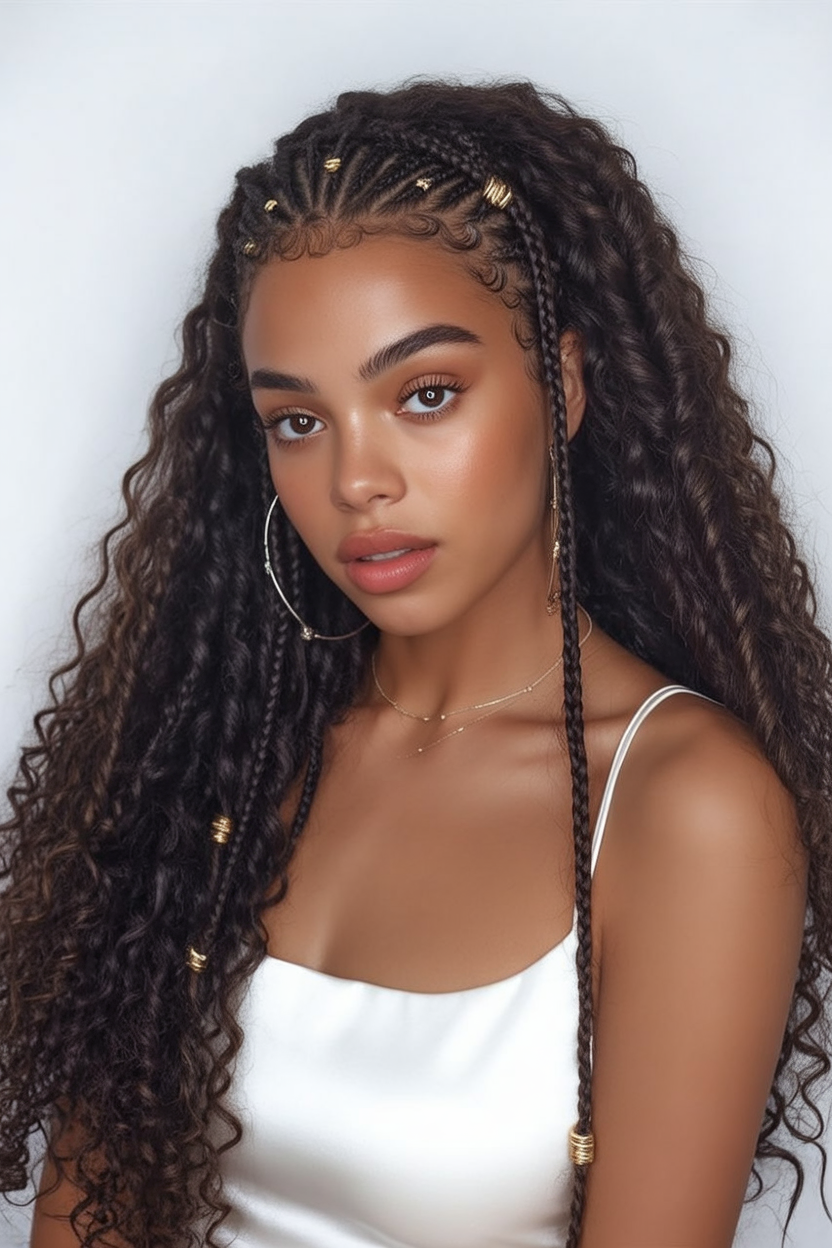 This style with Fulani braids and curly hair is sure to grab everyone’s attention. The architecture manages to unite old and new and you can find something charming to look at however you look.