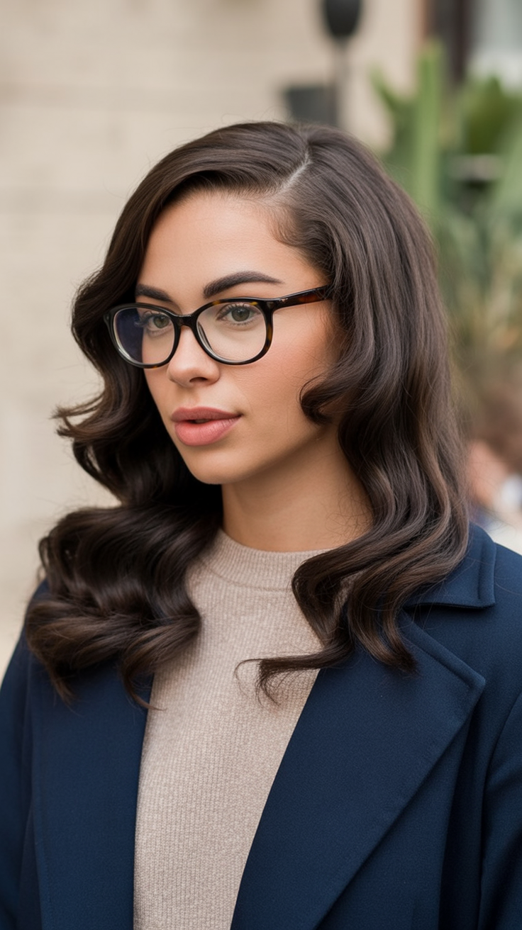 Parting your hair deeply and giving it a curled style creates a bombshell impression. It shapes your face well and gives your body motion with every step. It’s sultry, soft, and totally unforgettable.