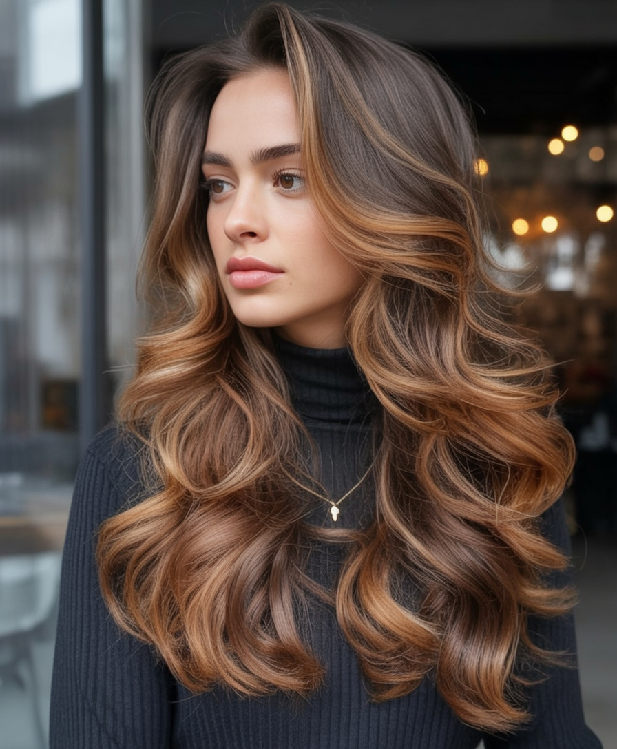 Both the middle section and the body wave give the influencer feel to this look from start to finish. This style’s secret weapon? Thanks to the right amount and a golden sparkle, your hair looks brightened from end to end.