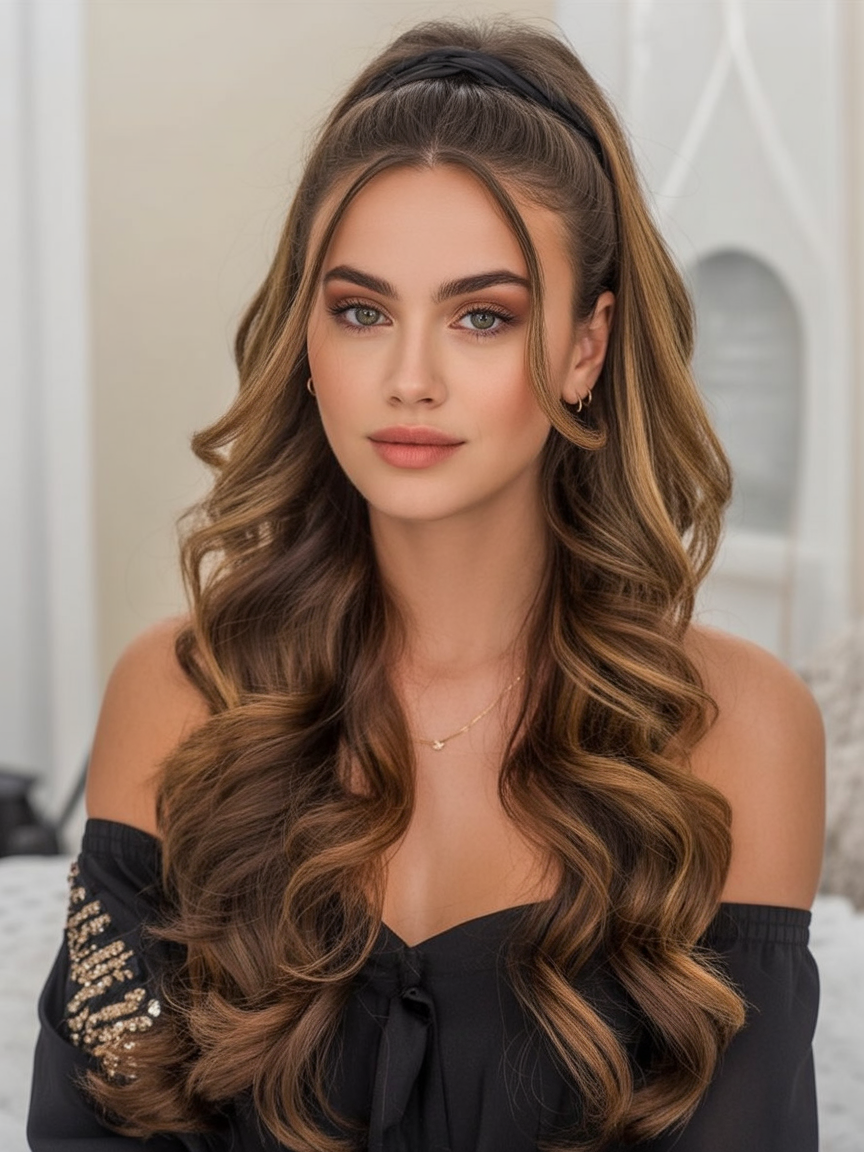 This half up half down style with cool hair makes you look cool, yet sophisticated. Since this hair is soft and voluminous at the top, it’s a beautiful way to look elegant on any Monday.