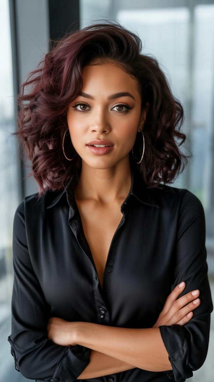 For black women, this style is most attractive when your hair is straight or lightly curled with extensions. Make sure to sleep with your hair wrapped, so it stays sleek and brush out your waves each morning when you wake up.