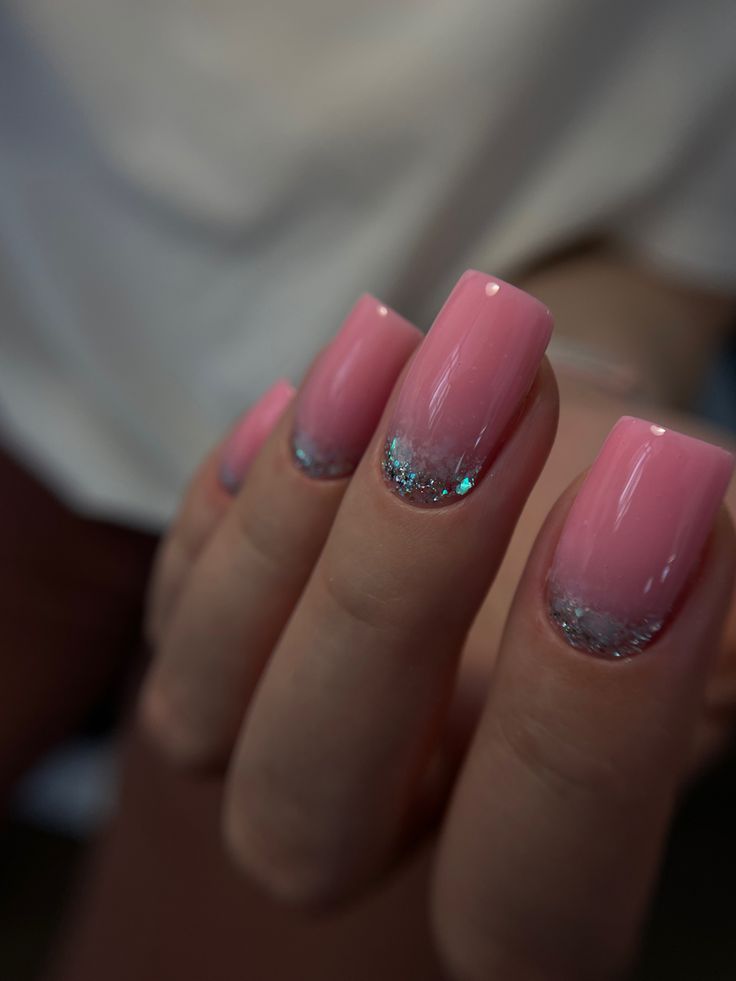 This design features light pink nails enhanced with a touch of shimmering glitter near the cuticles. The soft pink creates a versatile, feminine look that transitions effortlessly from day to evening. Perfect for women who prefer neutral tones but still want a subtle sparkle. Pair with a spring pastel outfit for a cohesive style.