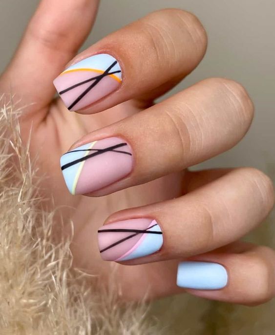 For a simple yet trending look, minimalist lines on a natural or nude base can make a statement. This design is perfect for those who appreciate the beauty in simplicity.