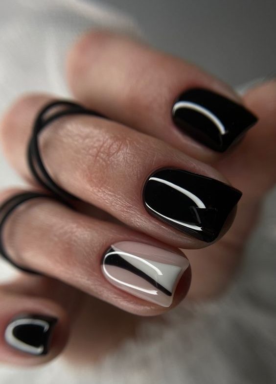 Even in summer, dark tones have their place. Summer nails short gel in black, navy, or dark green can offer a sophisticated contrast to the typical bright summer palette.