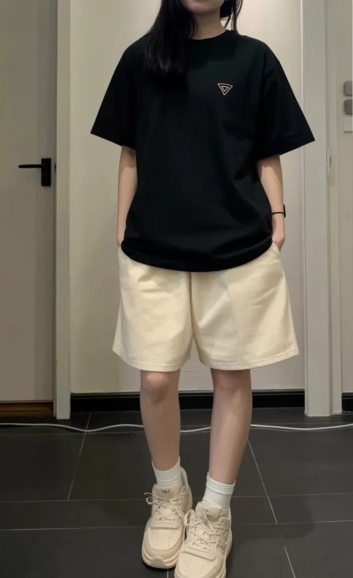 This is a great option for anyone who wants more coverage and truly appropriate shorts for school, especially in dress-code environments where tiny hemlines are not worth the hassle. The longer length makes it feel Modest without becoming heavy or old-fashioned, and the roomy tee keeps everything breathable. It is also one of the easiest looks to wear if you love a no-fuss routine. Pull your hair back, add sneakers, and you are basically done. Compared with fitted tops and short denim, this has a more modern, architectural feel. For girls who love Basic pieces, clean lines, and all-day Comfy dressing, it is a standout choice.