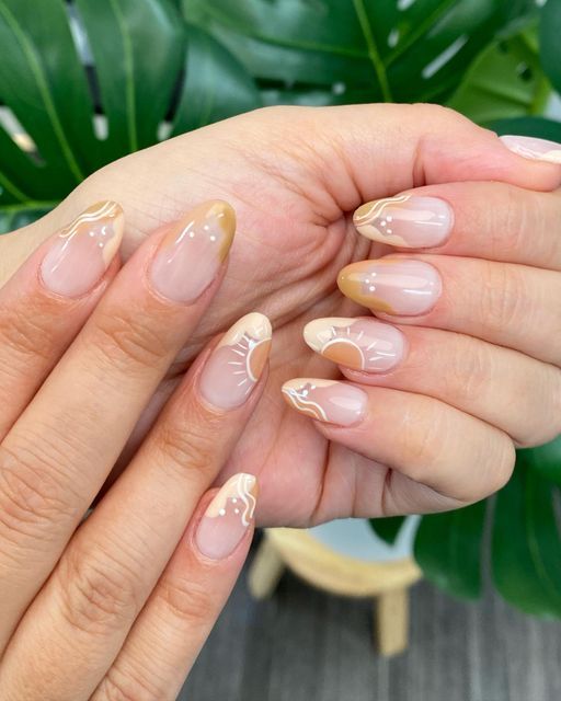 Nothing says sophistication quite like the blend of nude and coffee tones. These nails feature a delicate balance between soft nude backgrounds and striking coffee-colored swirls, perfect for those who prefer a subtle yet stylish look. The oval shape adds a classic touch, making this design ideal for both professional settings and casual outings.