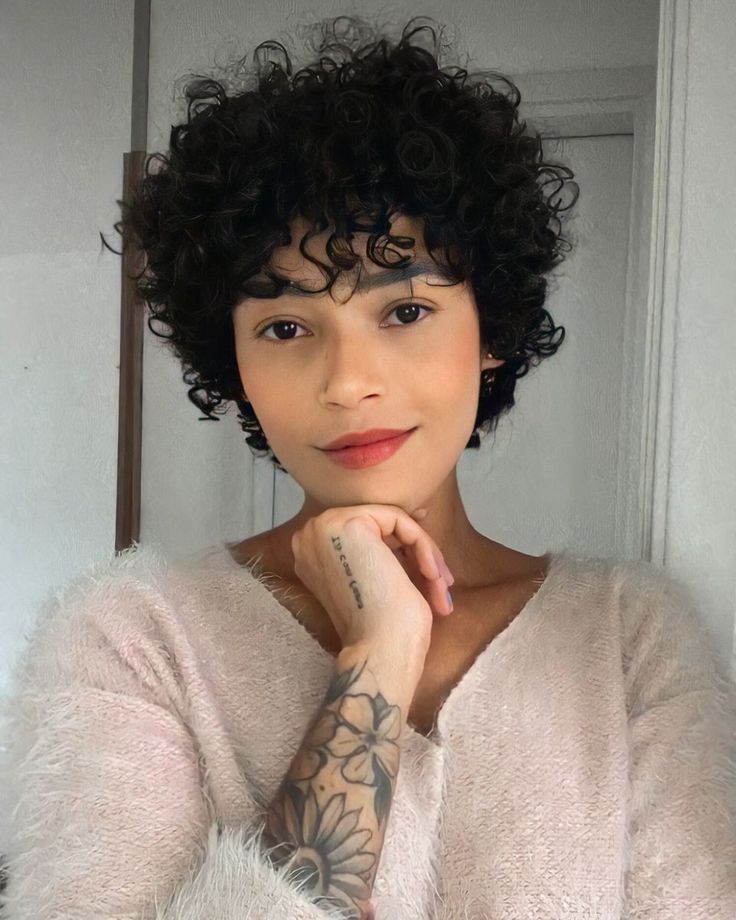 Add a touch of youthfulness with this short bob with bangs. The layered curls frame the face beautifully, making it a great option for round faces. This look is ideal for enhancing 3B curls, giving a natural and effortless vibe. It’s a versatile choice that works for both casual coffee runs and date nights.