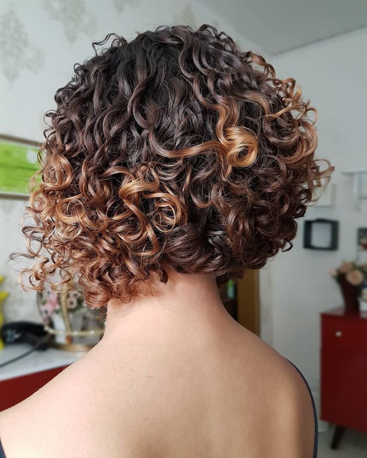 This medium-length layered bob is enhanced by sun-kissed highlights, giving it a fresh and playful look. It’s a fantastic option for women looking for natural and low-maintenance hairstyles. This cut accentuates the curl pattern, making it appear full and bouncy, perfect for spring or summer outings.