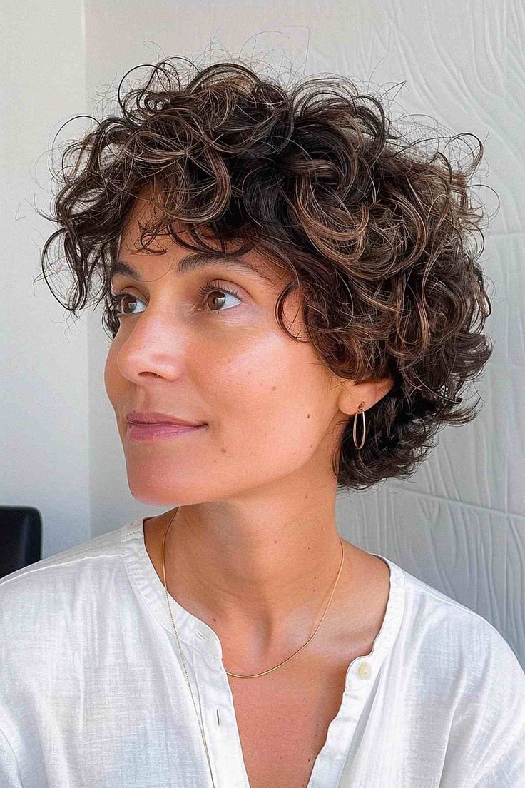 This shaggy curly bob combines structure and volume, making it an edgy and stylish choice. The layers give it a modern twist, making it ideal for women who want a bold and trendy look. The cut is especially flattering for round faces and works well with natural curls.