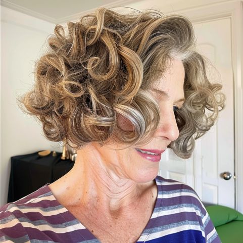 This gray curly bob is perfect for women embracing their natural gray tones. The structured curls add a touch of elegance and volume, making it a sophisticated choice for medium-length hairstyles. It’s a great way to celebrate natural beauty and age gracefully.
