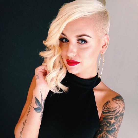 23. Platinum Blonde Curls with Shaved Side and Design