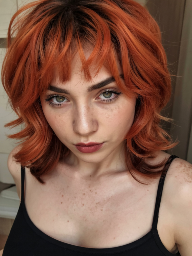 There’s something wickedly bold about this fiery, unrestrained hair — it’s like stepping into your power with every tousled strand. The rich copper-red color feels wild and supernatural, like something straight out of a Gothic novel. This isn’t a hairstyle for blending in; it’s a full transformation moment.